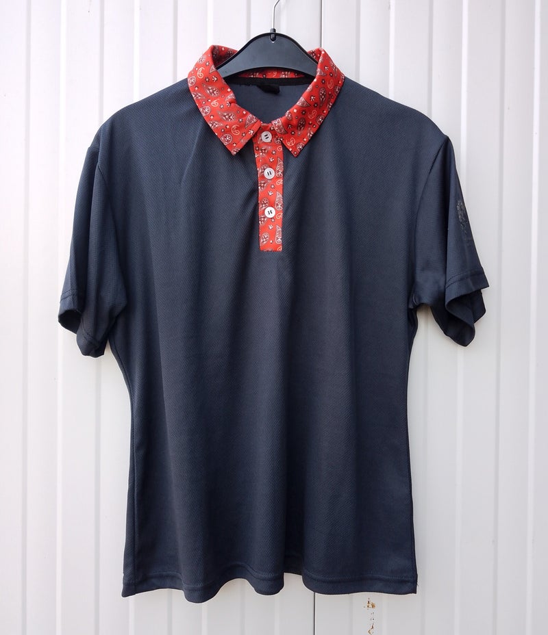 Een donkergrijze lijn met daarbij de welbekende rode boerenzakdoek print!!