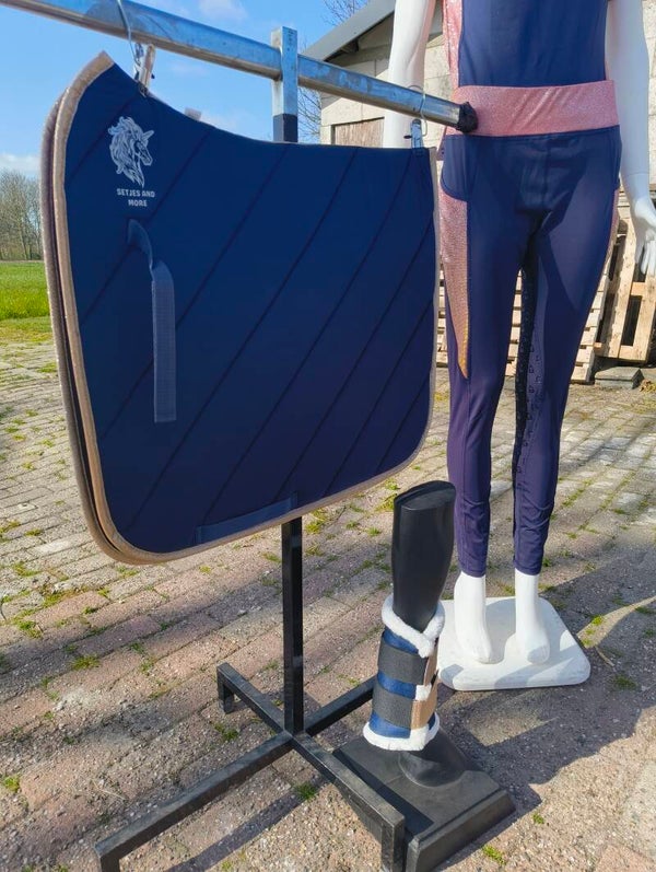 Prachtig blauw/rosegoud dressuurdekje!!